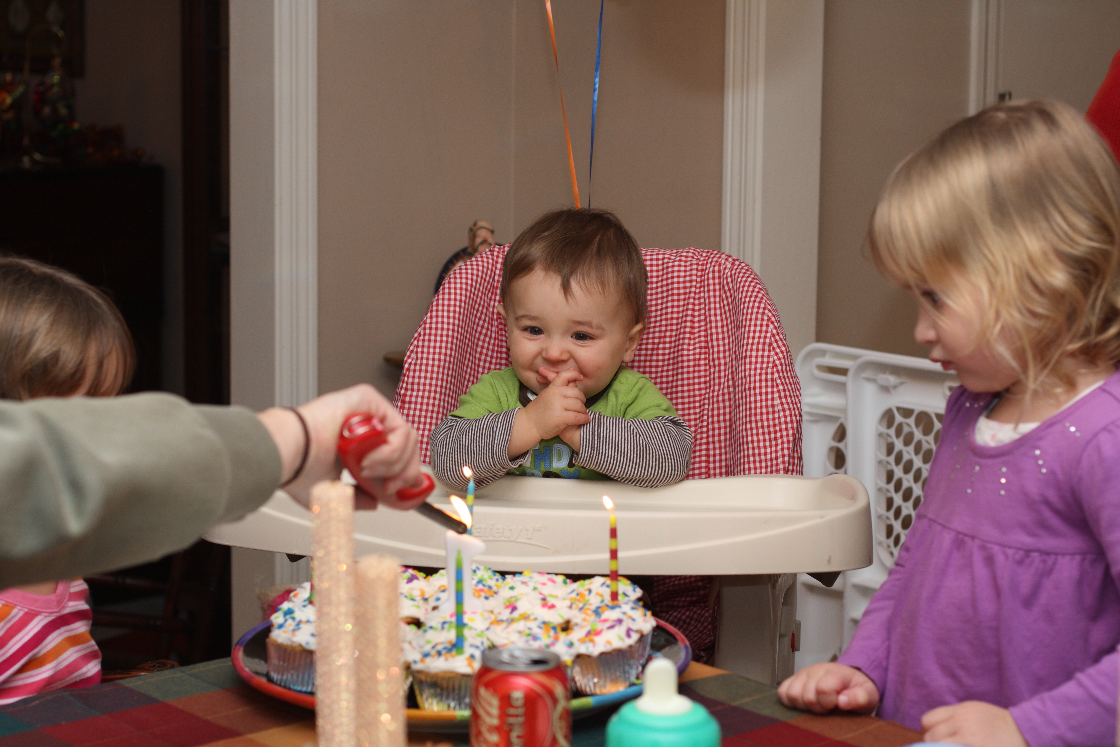 Jack seems excited by the cupcakes and candles.